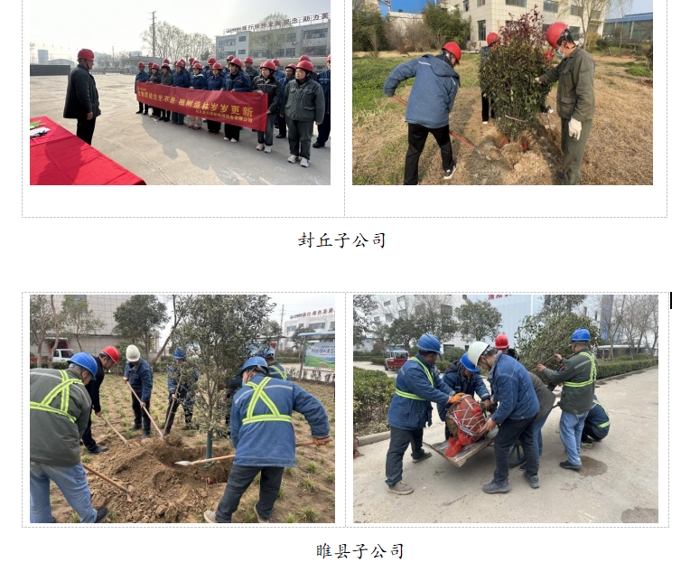 (图文编辑 崔隽 泽文 通讯员 张蕾)春回大地,万物勃发。在第48个植树节来临之际,为深入践行习近平生态文明思想,充分发挥基层党组织战斗堡垒作用和党员先锋模范作用,公司党委统一部署,各子公司党支部积极响应,于3月11日-12日集中组织开展了形式多样的义务植树主题党日活动。广大党员干部冲锋在前,带领职工群众以实际行动为厂区添绿、为大地增彩。