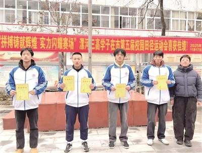 劳动教育亮点纷呈。学校先后开展“‘植’此青绿 美韵校园”、包饺子、包粽子、制作腊八蒜等劳动教育活动,让学生在实践中体验劳动乐趣、掌握劳动技能、养成劳动习惯、传承劳动美德。 体育赛事捷报频传。2024年5月,该校荣获河南省第十二届中华轩辕龙舟大赛漯河龙舟公开赛高中女子组200米直道竞速第一名和优秀组织奖、漯河市第九届“市长杯”校园足球联赛高中男子组二等奖;10月,斩获漯河市校园篮球比赛高中男子组二等奖;11月,获评“奔跑吧·少年”漯河市第四届校园田径运动会精神文明代表队;12月,在漯河市第三届校园乒乓球比赛中,荣获高中组体育道德风尚奖、女子团体第二名、男子团体第四名,展现了学生昂扬向上的精神风貌。